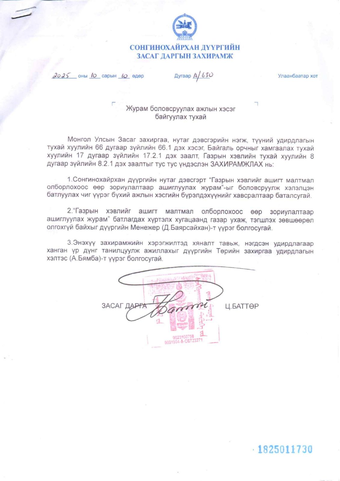 Газар хөлдөх улирал эхэлсэнтэй холбогдуулан дүүрэгт хайрга, дайрга олборлож, ашиглах, ашигт малтмал, ашиглалтын тусгай зөвшөөрөлгүй иргэний болон аж ахуйн нэгж байгууллагын эзэмших эрхийн гэрчилгээтэй гэр орон сууцны, хашааны, аж ахуйн зориулалттай газрыг тэгшлэх тухай зөвшөөрлийг 2025 оны 10 дугаар сарын 10-ны өдрөөс 2026 оны 04 дүгээр сарын 20-ны өдрийг хүртэл түр хугацаанд олгохыг зогсоосон тухай Сонгинохайрхан дүүргийн засаг дарга Ц.Баттөр мэдээллээ.