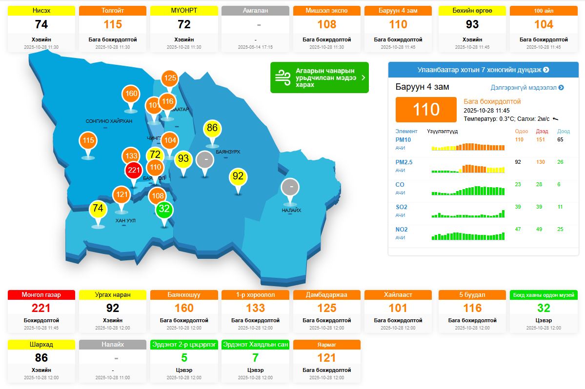Өнөөдрийн /2025.10.28/ агаарын чанарыг мэдээг танилцуулж байна.