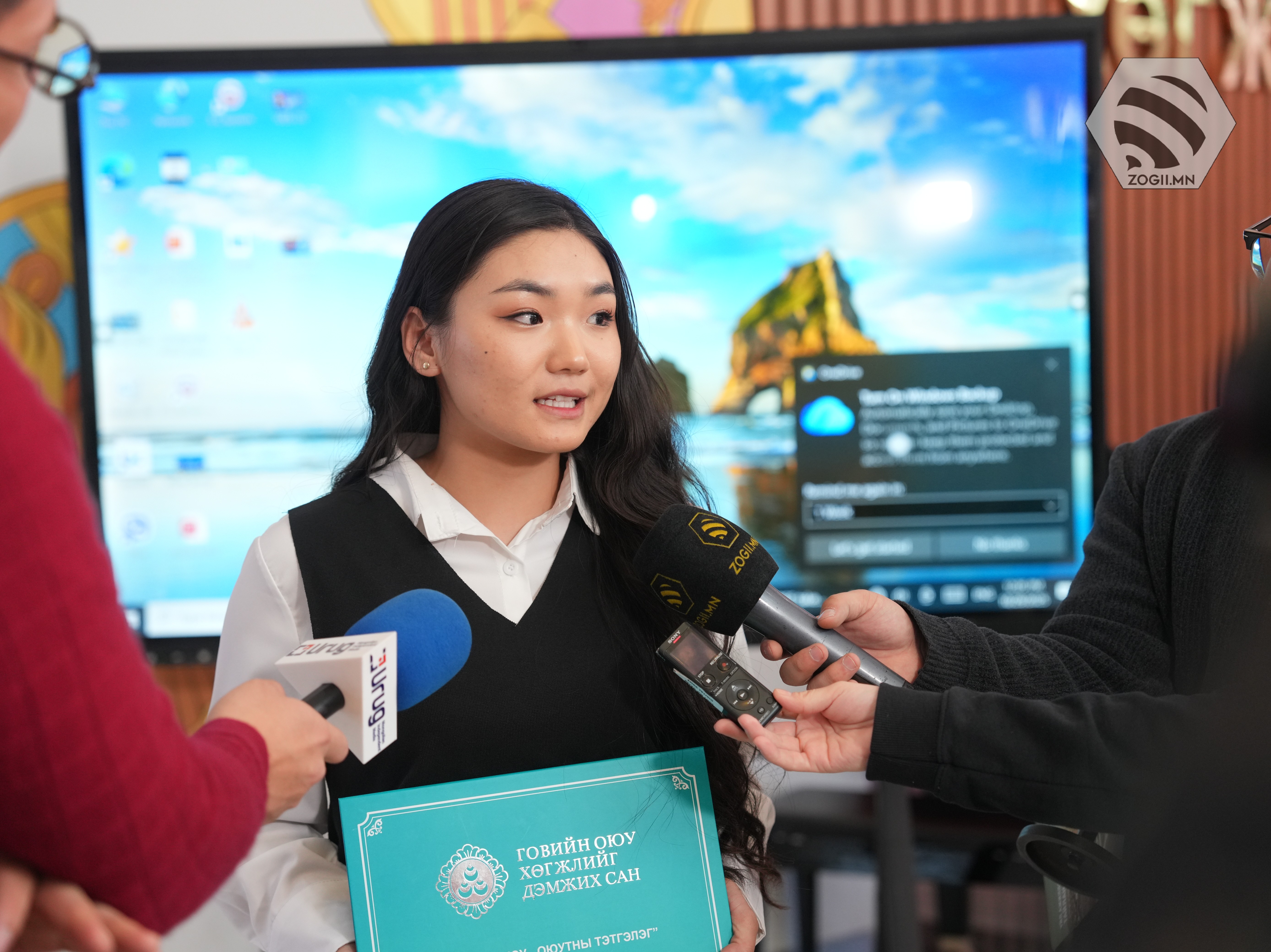“Говийн оюу” тэтгэлгийн талаар фэйсбүүк болон ангийнхаа хүүхдүүдээс мэдэж, материал бүрдүүлээд хамрагдсан. Энэ тэтгэлэг нь миний санхүүгийн дарамтыг багасгаж, хичээлдээ илүү төвлөрөх боломж олгосон. Төлбөрийг өмнө нь аав, ээж маань төлдөг байсан, одоо би хэрэглээний мөнгөө өөрөө ажил хийж олдог.