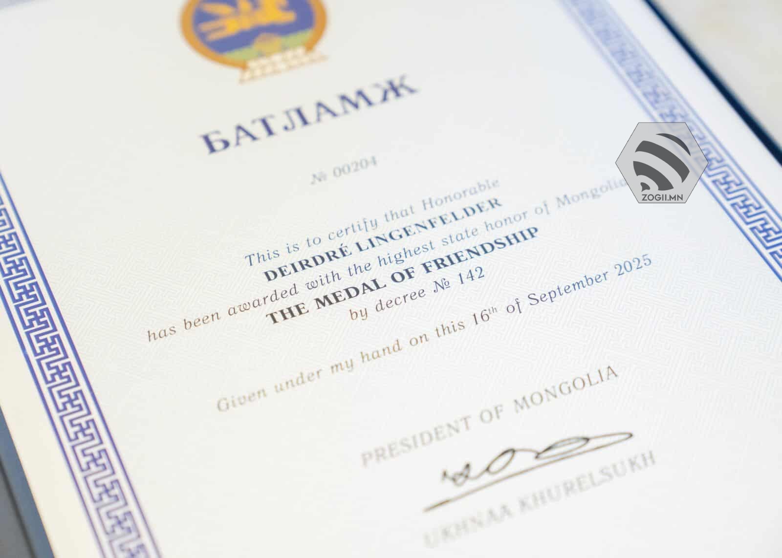 Монгол Улс, Улаанбаатар хот- Монгол Улсын Ерөнхийлөгч Ухнаагийн Хүрэлсүхийн зарлигаар “Оюу толгой” компанийн Гүйцэтгэх захирал Өмнөд Африкийн Бүгд Найрамдах Улсын иргэн Дэйрдрэ Лингенфэлдерийн Монгол Улсын уул уурхайн салбарын хөгжилд оруулсан бодитой хувь нэмэр, гүний уурхайн үйл ажиллагааг амжилттай эхлүүлж, үйлдвэрлэлийг аюулгүй, тогтвортой нэмэгдүүлэхийн сацуу байгаль орчныг хамгаалах, олон нийттэй харилцах чиглэлээр идэвхтэй ажилласан хүчин чармайлтыг нь өндрөөр үнэлэн “Найрамдал медаль”-аар шагналаа.