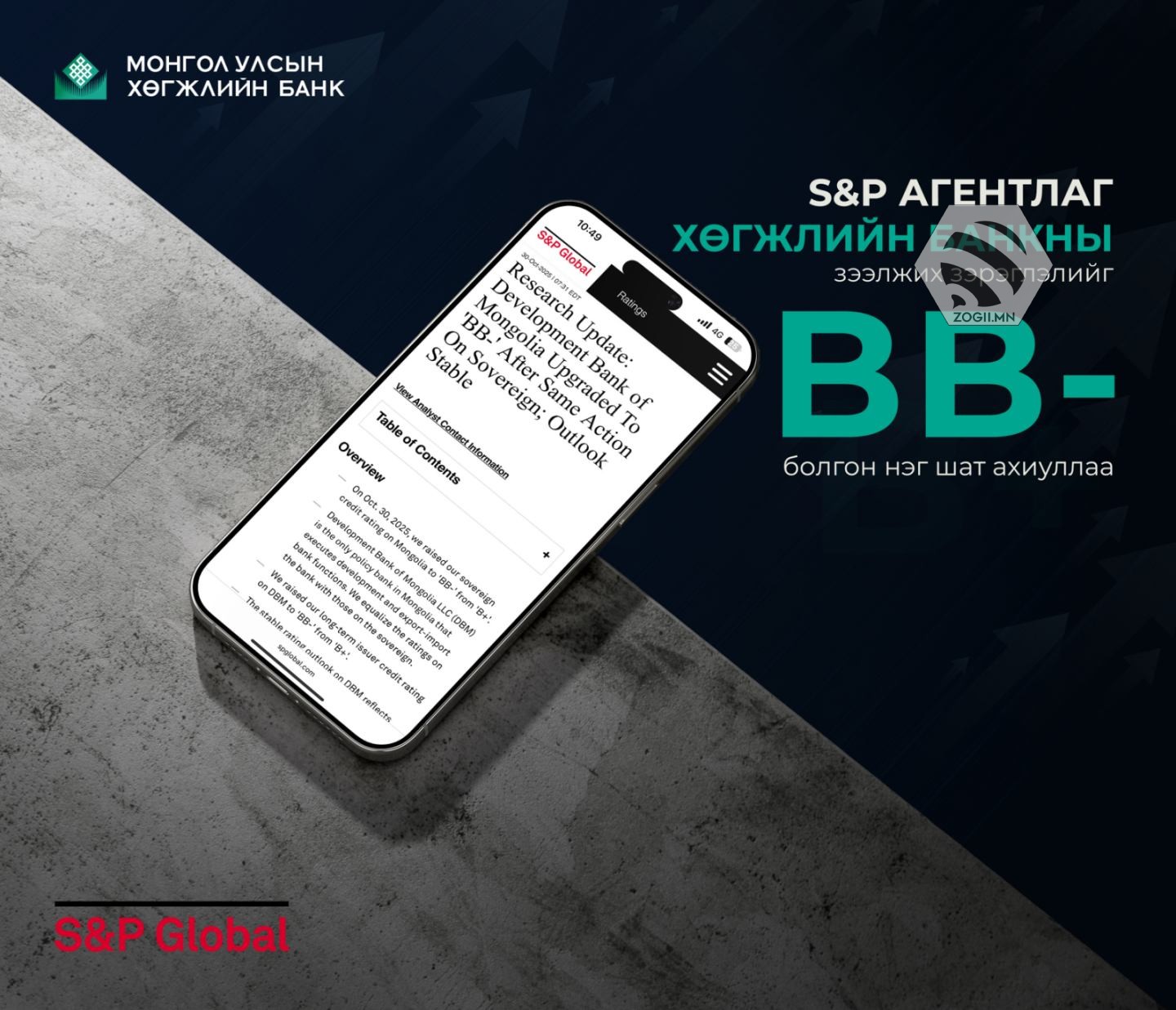 Олон улсын зээлжих зэрэглэл тогтоогч S&P агентлаг 2025 оны аравдугаар сарын 30-ны өдөр Монгол Улсын Хөгжлийн банкны урт хугацааны зээлжих зэрэглэлийг “B+”-ээс “BB-” болгон ахиулж, төлөвийг тогтвортой гэж үнэллээ.