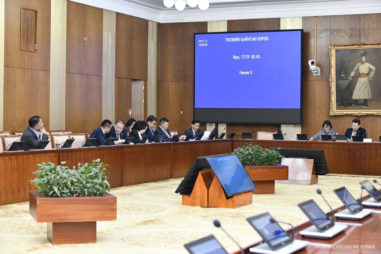 Монгол Улсын Их Хурлын Төсвийн байнгын хорооны өнөөдрийн /2025.11.12/ хуралдаан 14 цаг 28 минутад гишүүдийн ирц 51.9 хувьд хүрснээр эхэлж, гурван асуудал хэлэлцэн шийдвэрлэв.