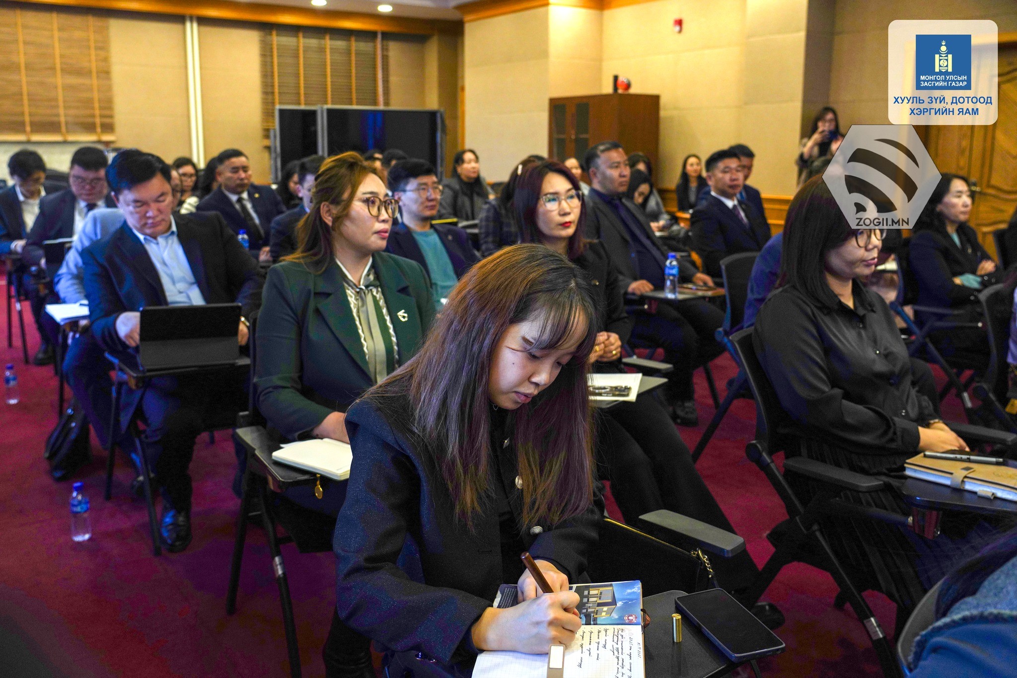 Хууль зүй, дотоод хэргийн яамны хурлын танхимд хоёр өдрийн турш үргэлжлэх энэхүү сургалт-семинарын төгсгөлд Хууль зүй, дотоод хэргийн сайдын эрхлэх асуудлын хүрээнд 2024 онд хийж гүйцэтгэсэн ажил, үр дүнгийн үнэлгээгээр манлайлсан Хууль, эрх зүйн хэлтсийн хамт олонд өргөмжлөл, мөнгөн шагнал гардуулна.