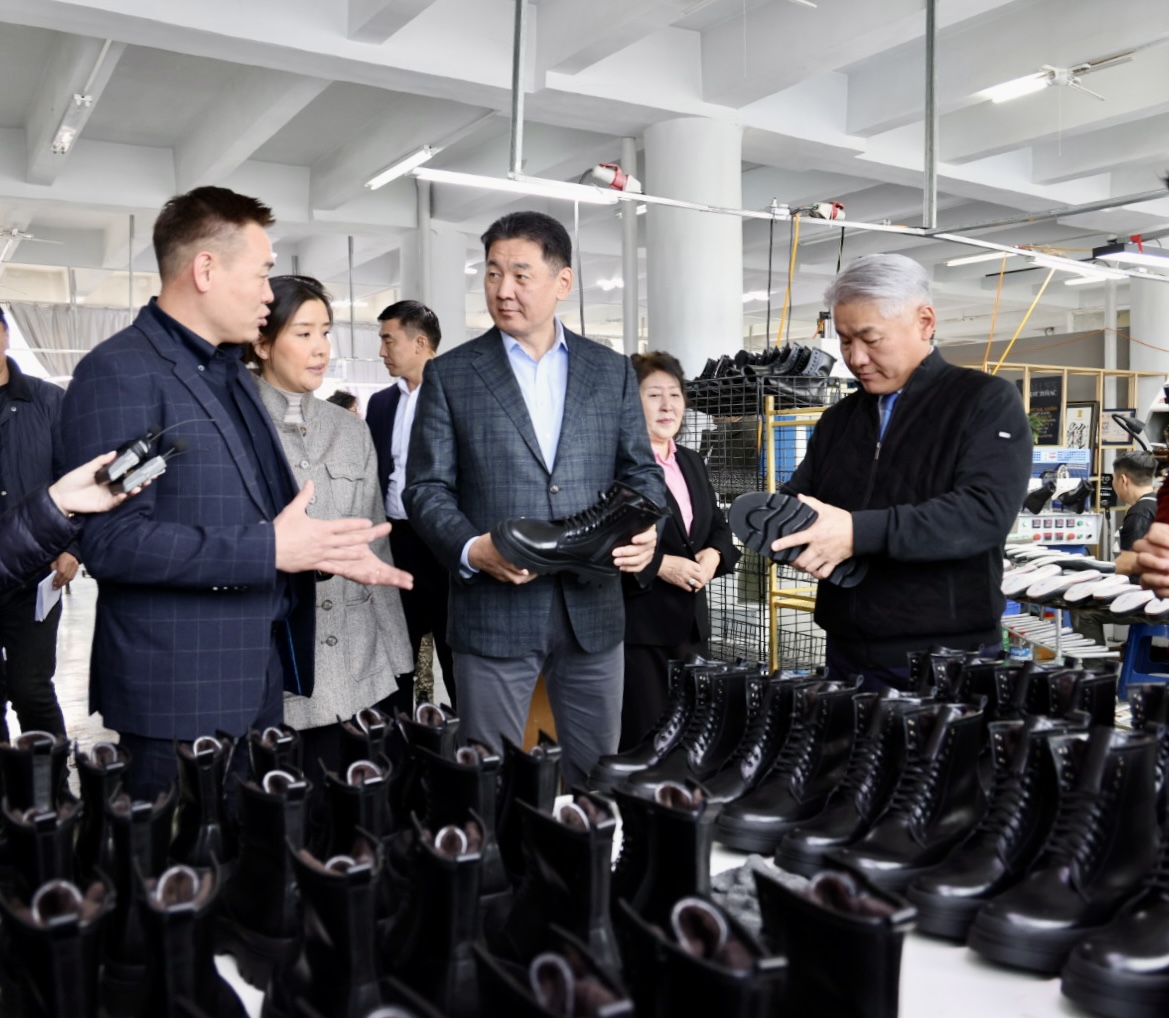 Монгол Улсын Ерөнхийлөгч У.Хүрэлсүх, Хүнс, хөдөө аж ахуй, хөнгөн үйлдвэрийн сайд Ж.Энхбаяр нар үндэсний үйлдвэрлэгч “Брэнд гутал” ХХК-ийн үйлдвэрт 2025.11.14-ний өдөр ажиллалаа.