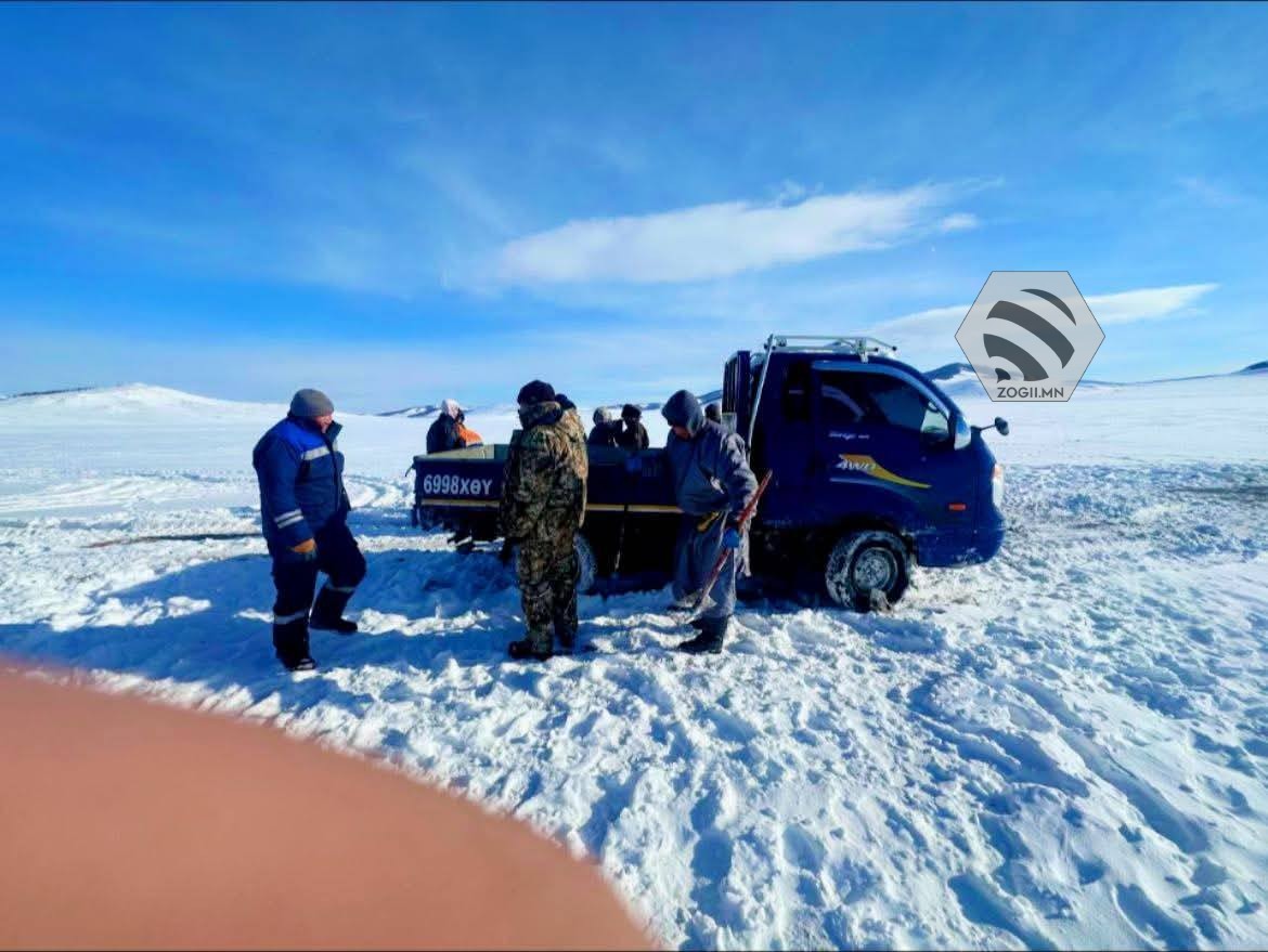 Мөс нимгэн хэвээр байгаа тул 2 жижиг автомашиныг мөс бүрэн зузаарсны дараа гаргахаар болжээ.