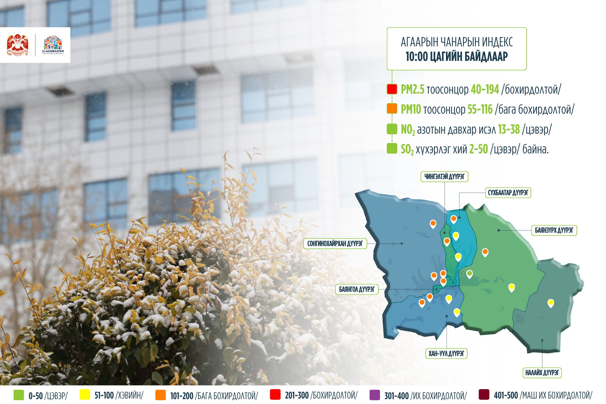 Агаарын чанарын өнөөдрийн мэдээллийг танилцуулж байна.