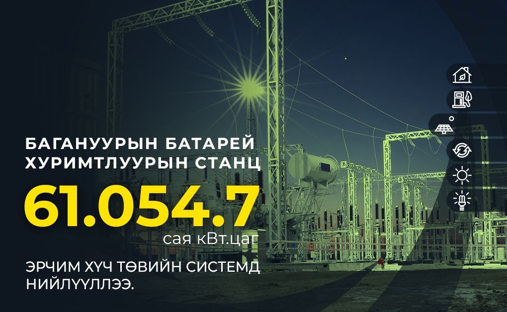 Нийслэлийн Багануур дүүргийн I хорооны нутаг дэвсгэрт “Багануур” цахилгаан түгээх дэд станцыг түшиглэн 50 МВт хүчин чадалтай батарей хуримтлуурын станцыг байгуулж, 2024 оны арванхоёрдугаар сарын 5-ны өдрөөс төвийн системд эрчим хүч нийлүүлж эхэлсэн. Өнөөдрийг хүртэл Багануурын батарей хуримтлуурын станц нийт 61 сая кВт.цаг эрчим хүчийг төвийн бүсийн нэгдсэн системд нийлүүлээд байна.