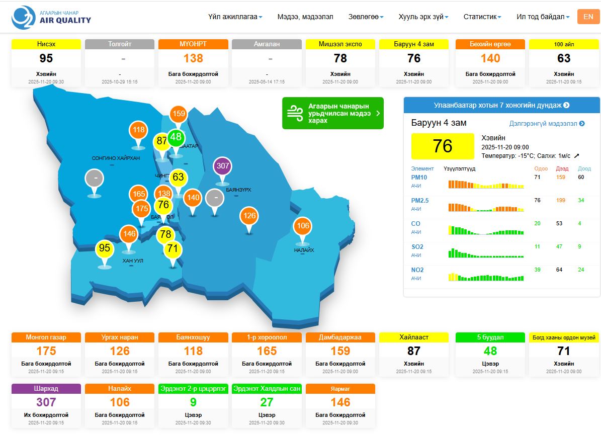 Өнөөдрийн /2025.11.20/ агаарын чанарыг мэдээг танилцуулж байна.