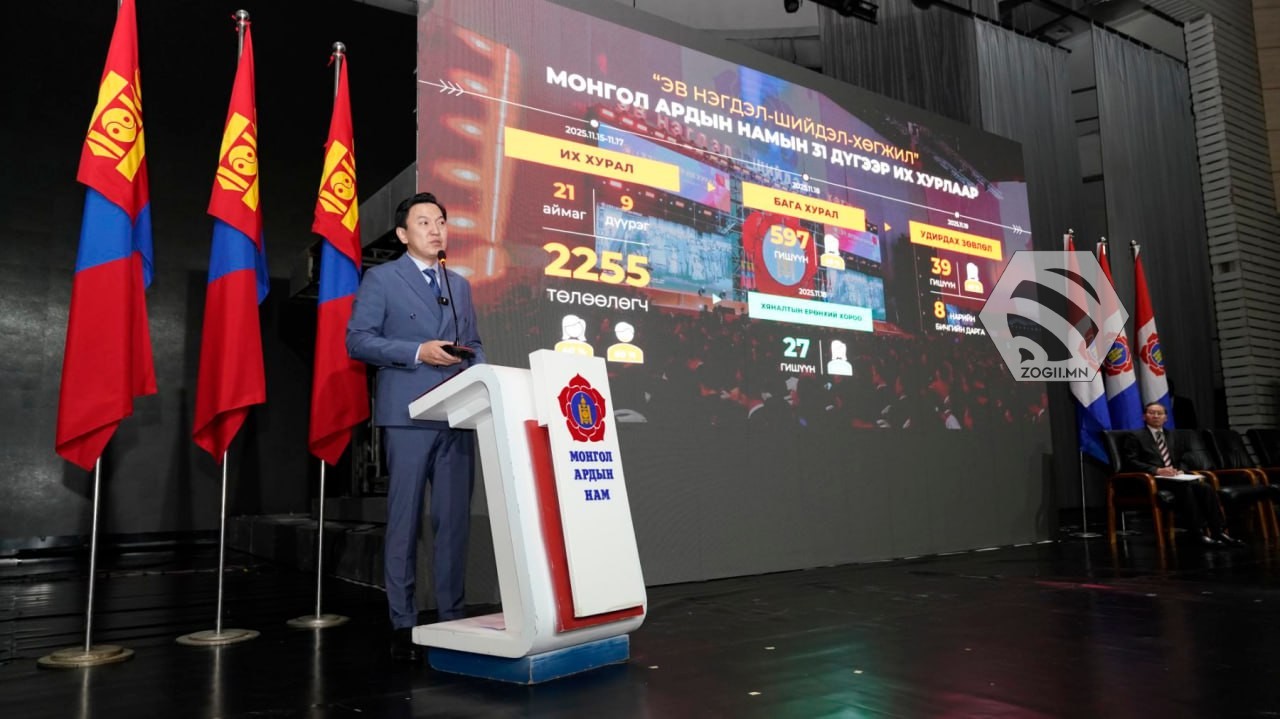 Намын ээлжит Их хуралд 21 аймаг, есөн дүүргээс 2255 төлөөлөгч сонгогдон оролцож, тэндээс 597 гишүүнтэй Бага хурлыг байгуулсан, Бага хурлын анхдугаар хуралдаанаас 39 гишүүнтэй намын Удирдах зөвлөл, мөн орон тооны болон орон тооны бус найман Нарийн бичгийн даргыг сонгосон, түүнчлэн 27 гишүүнтэйгээр Хяналтын ерөнхий хороог шинэчлэн бүрдүүлсэн тухай товчхон мэдээлэл хүргэв. Бага хурал болон Удирдах зөвлөлийн гишүүдийн 40 хувийг эмэгтэйчүүдийн төлөөлөл бүрдүүлж буйгаараа онцлог гэдгийг ч дурдлаа.