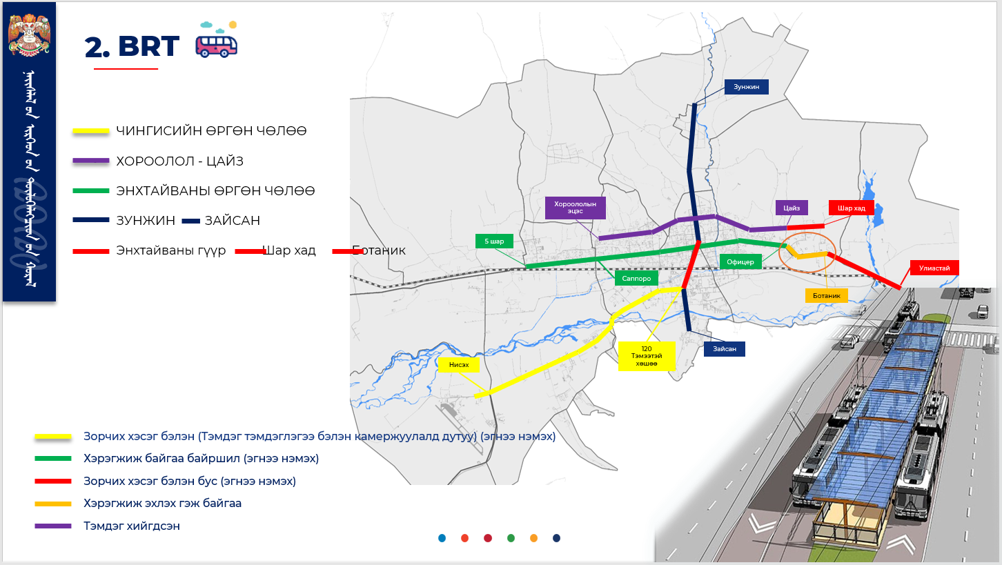 Офицеруудын ордноос Ботаникийн автобусны буудал хүртэлх авто замын 1-р эгнээг бүрэн камержуулж, нийтийн тээврийн чиглэлийн тээврийн хэрэгслийн эгнээг бүрэн чөлөөлөх ажлыг хэрэгжүүлж байна. Тус чиглэлд нийтийн тээврийн үйлчилгээний 9 чиглэлийн 88 автобус тогтмол зорчдог.