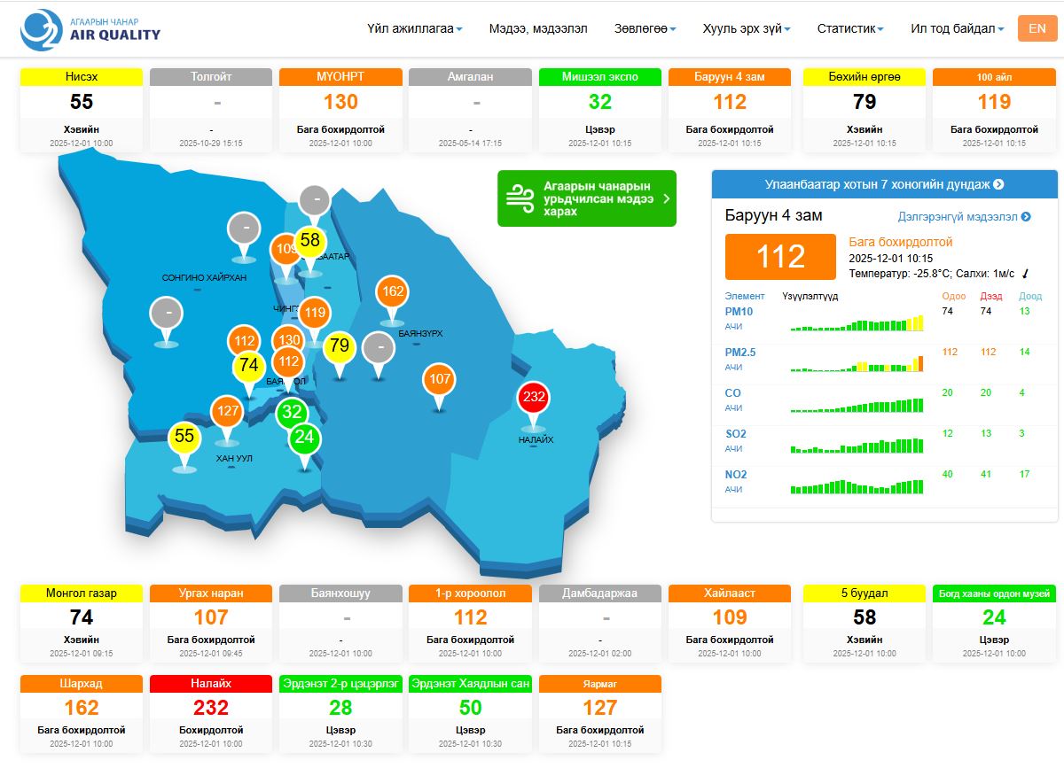 Өнөөдрийн /2025.12.01/ агаарын чанарыг мэдээг танилцуулж байна.