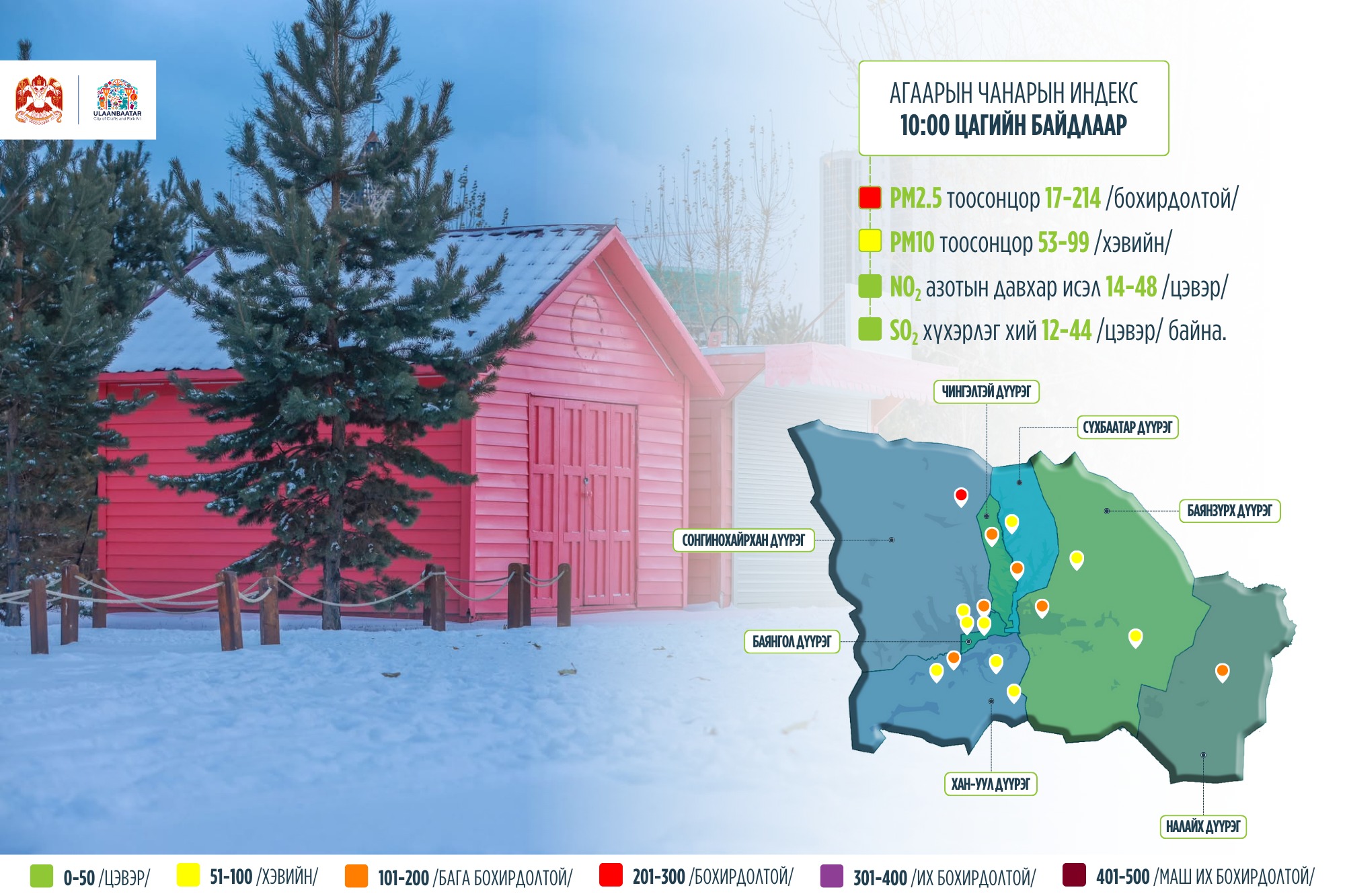 Агаарын чанарын индекс 10:00 цагийн байдлаар: