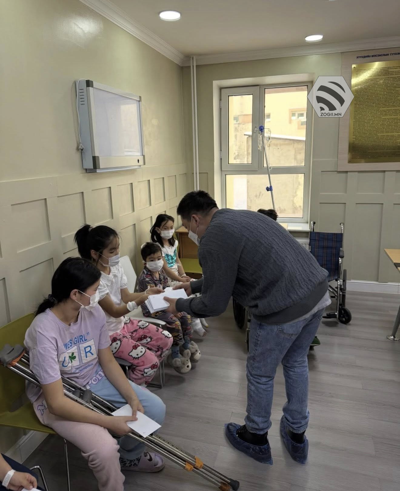Тэрбээр эмнэлгийн эрхлэгч болон тасгийн эмч нартай уулзаж, хүүхдүүдийн нөхцөл байдалтай танилцсаны үндсэн дээр нийт 48 хүүхдэд эм, тариа болон эмчилгээний зардалд нь нэмэр болохуйц сэтгэлийн дэм өргөсөн байна.