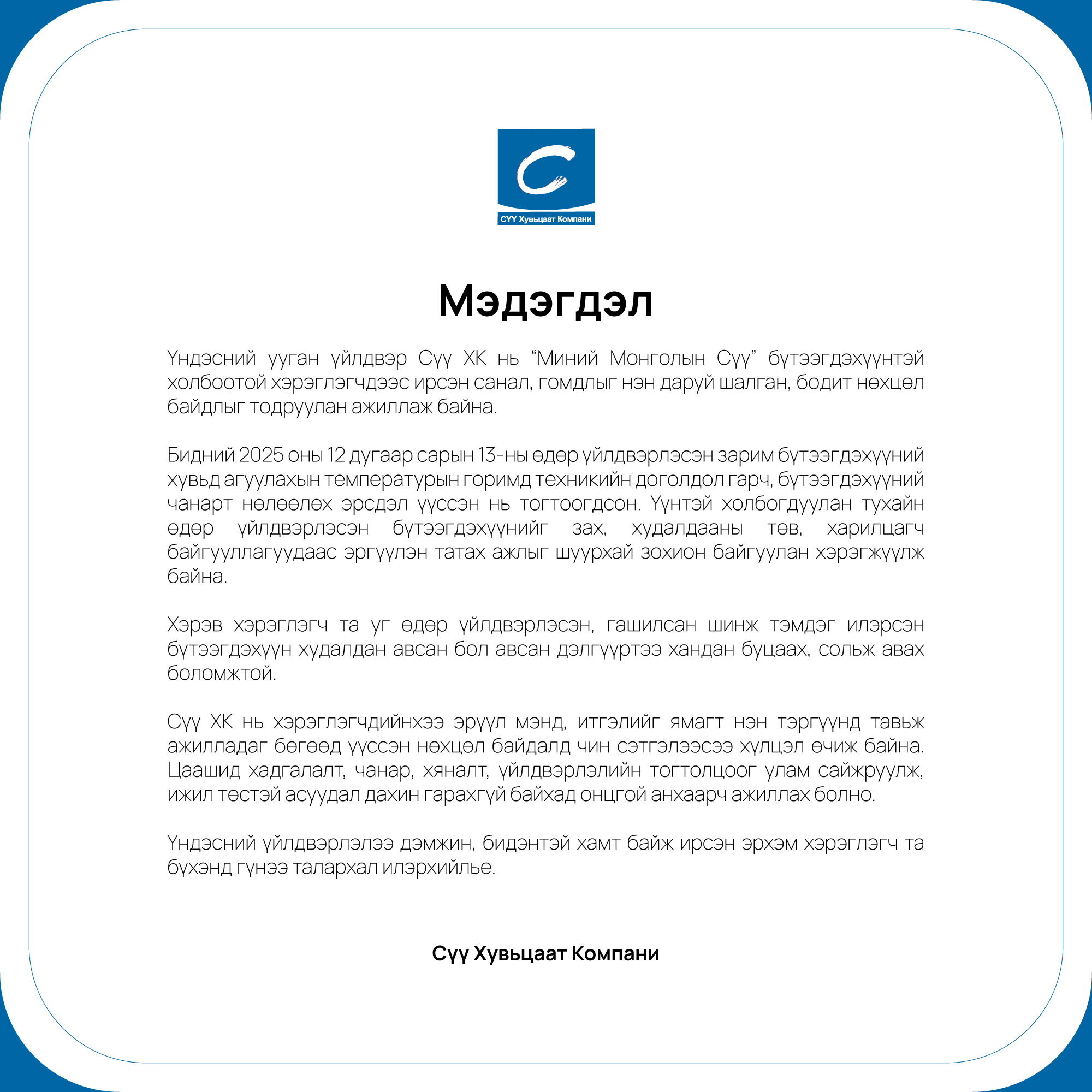 Сүү ХК-иас дараах мэдэгдлийг гаргалаа. Үүнд: