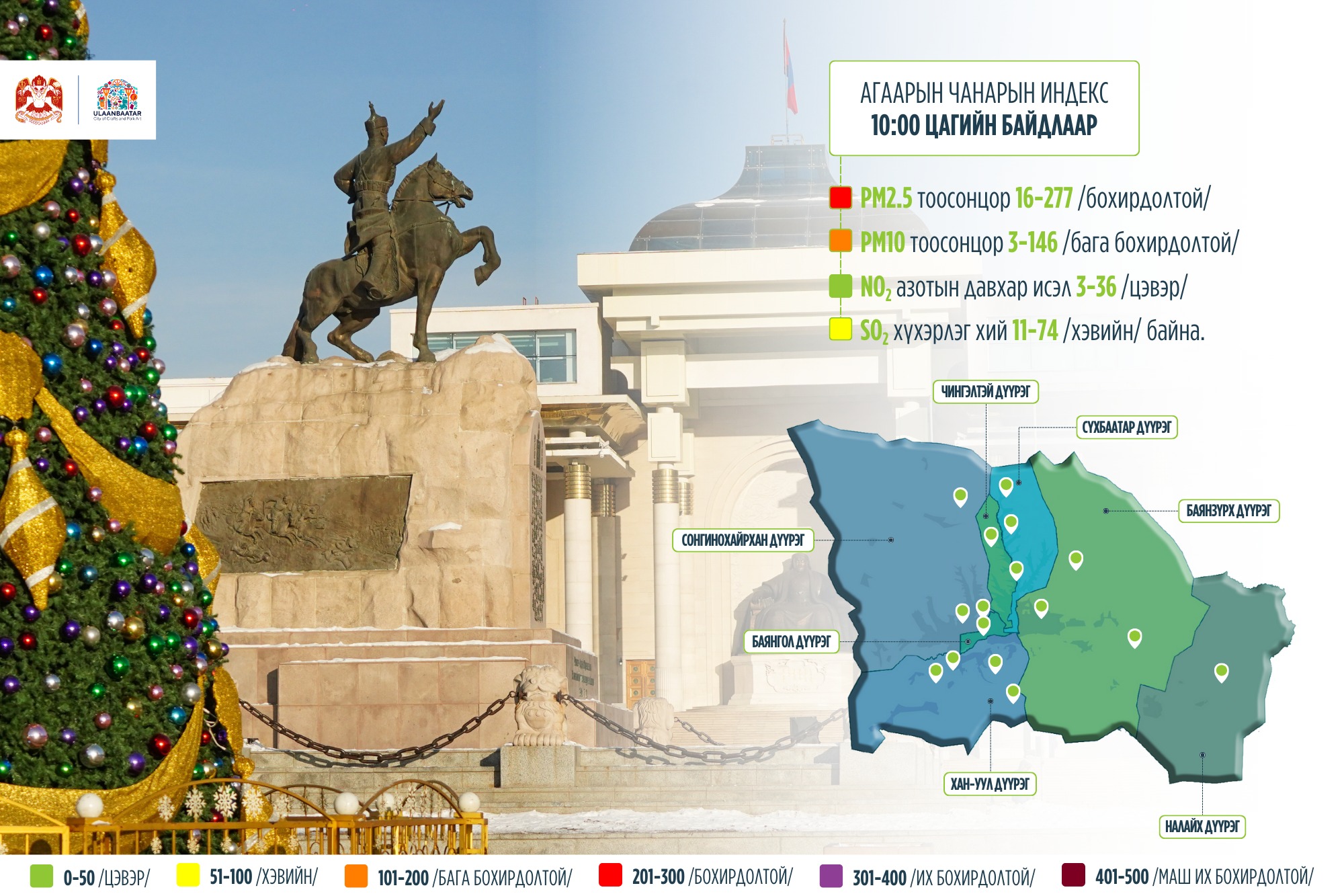 Агаарын чанарын өнөөдрийн /2025.12.22/ мэдээг танилцуулж байна.