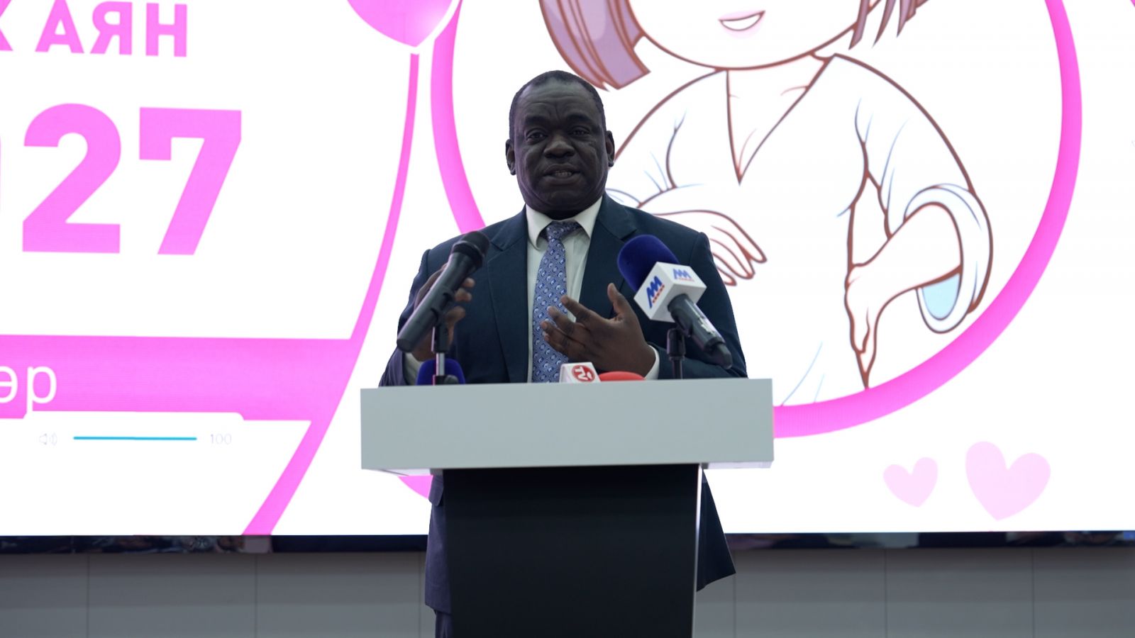 Түүнчлэн монгол эмэгтэйчүүд, монголын ирээдүй болсон бяцхан үрсийн маань эрүүл мэндийн төлөө үндэсний хэмжээнд түгээх аяныг зохион байгуулж буй НҮБ-ын Хүүхдийн сангийн суурийн төлөөлөгч Эваристе Куасси Комлан болон хамт олонд гүн талархаж байгаагаа илэрхийлээд, удахгүй танд хүрэх “бичил тэжээлийн бэлдмэл” -ийг хариуцлагатай, яг эмчийнхээ зөвлөснөөр хэрэглэхийг жирэмсэн эмэгтэйчүүддээ захилаа. .jpg)