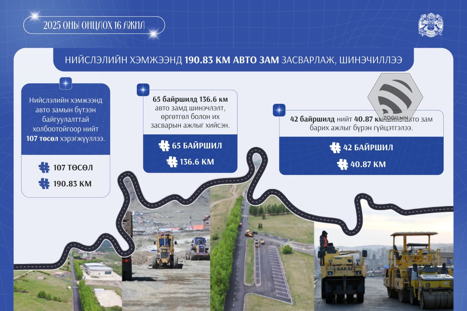 Тус бүтээн байгуулалтын бэлтгэл ажлыг бүрэн хангаж, барилга угсралтын ажлыг 2025 оны гуравдугаар сарын 10-ны өдөр эхлүүлсэн. Өнөөдрийн байдлаар төслийн нийт ажил 54 хувьтай үргэлжилж байна. Дүүжин замын тээврийн 19 тулгуур багана суурилуулахаас 18 тулгуур баганыг суурилуулж, хоёр буудлын барилгын ажлыг гүйцэтгэж байна. Мөн 98 ширхэг кабины гараашийн барилга угсралтын ажлыг эхлүүллээ. Энэ өвөл дүүжин замын тээврийн ажил зогсолтгүй үргэлжилнэ. 2025 оны долоодугаар сарын 8-нд Дүүжин замын тээврийн үйл ажиллагааг хариуцах байгууллага “Улаанбаатар кабель кар” ОНӨТҮГ-ыг байгуулж, зорчигч тээврийн үйл ажиллагааны бэлтгэл ажлыг хангасан. Уг төслийн хоёрдугаар шугамыг “Үндэсний цэцэрлэгт хүрээлэн-Үндэсний соёл амралтын хүрээлэн” чиглэлд 2.7 км урттай, гурван зогсоолтойгоор төлөвлөж байна.