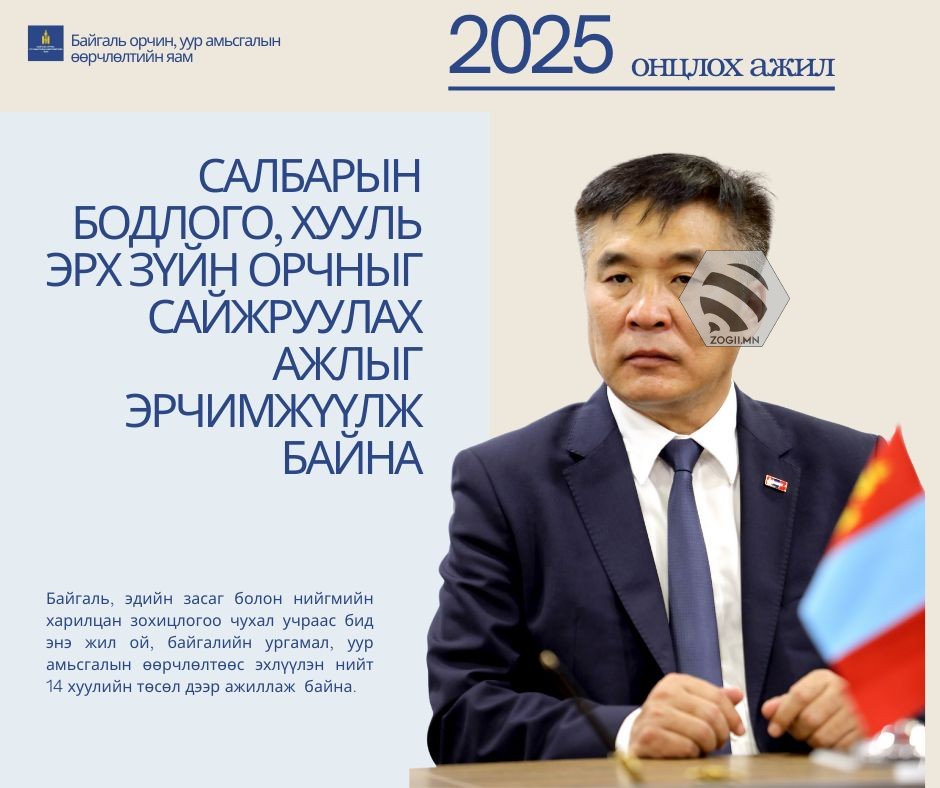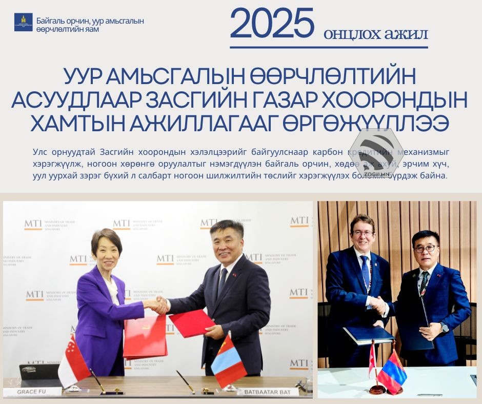 Байгаль орчин, уур амьсгалын өөрчлөлтийн яамны 2025 онд хийж хэрэгжүүлсэн онцлох ажлуудыг танилцуулж байна.