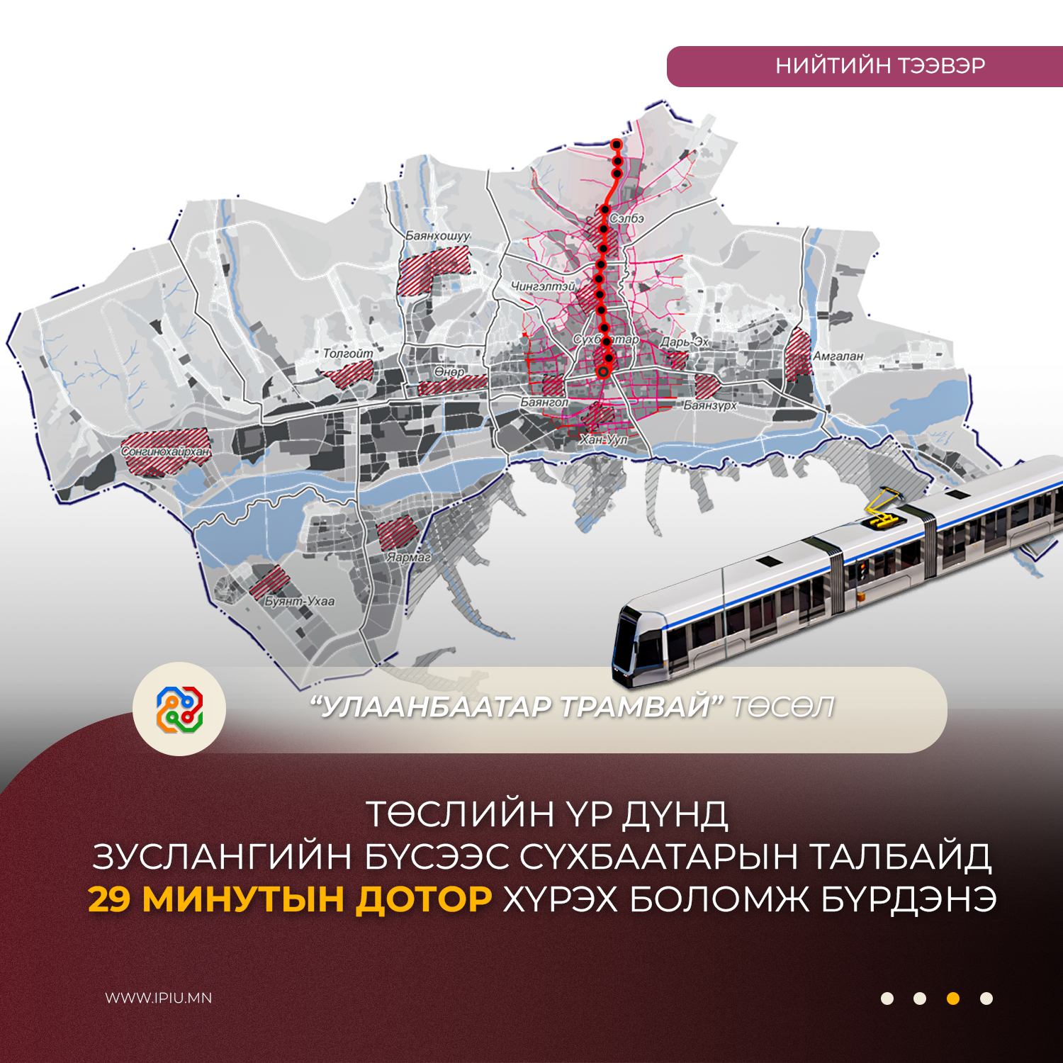Төслийг хэрэгжүүлснээр хотын хойд бүс болох зуслангийн бүсийг Сүхбаатарын талбайтай холбох трамвайн шугамаар 29 минут зорчих боломж бүрдэх бол Сүхбаатарын талбайгаас Яармагийн бүс буюу Архивын ерөнхий газар чиглэлд 37 минут зорчих нөхцөл бүрдэх юм.