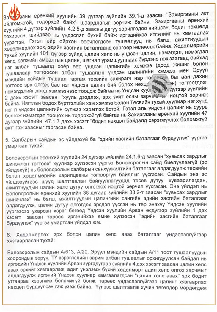 - Салбарын санхүүжилт, эдийн засгийн баталгааг алдагдуулж, төсвийн болон хөдөлмөрийн харилцаанд эрсдэл үүсгэсэн гэж үзсэн байна.