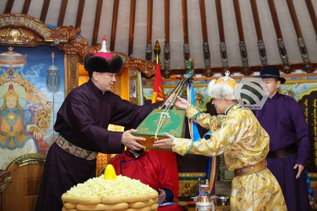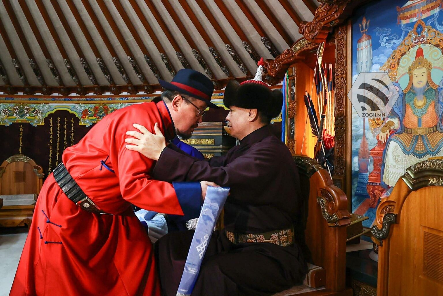 Төрийн тэргүүнд Улсын Их Хурлын дарга Ням-Осорын Учрал, Монгол Улсын Ерөнхий сайд Гомбожавын Занданшатар нар алд цэнхэр хадаг дэлгэн амар мэндийг нь эрэн золголоо.