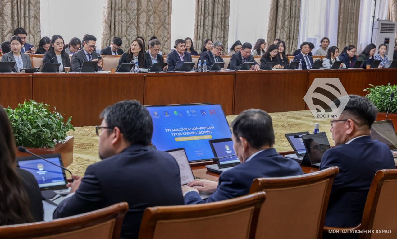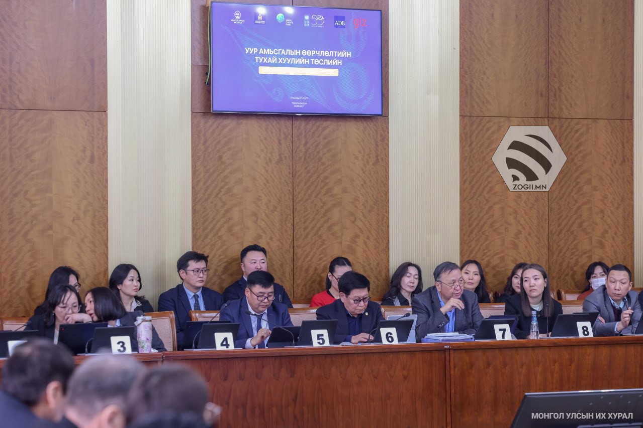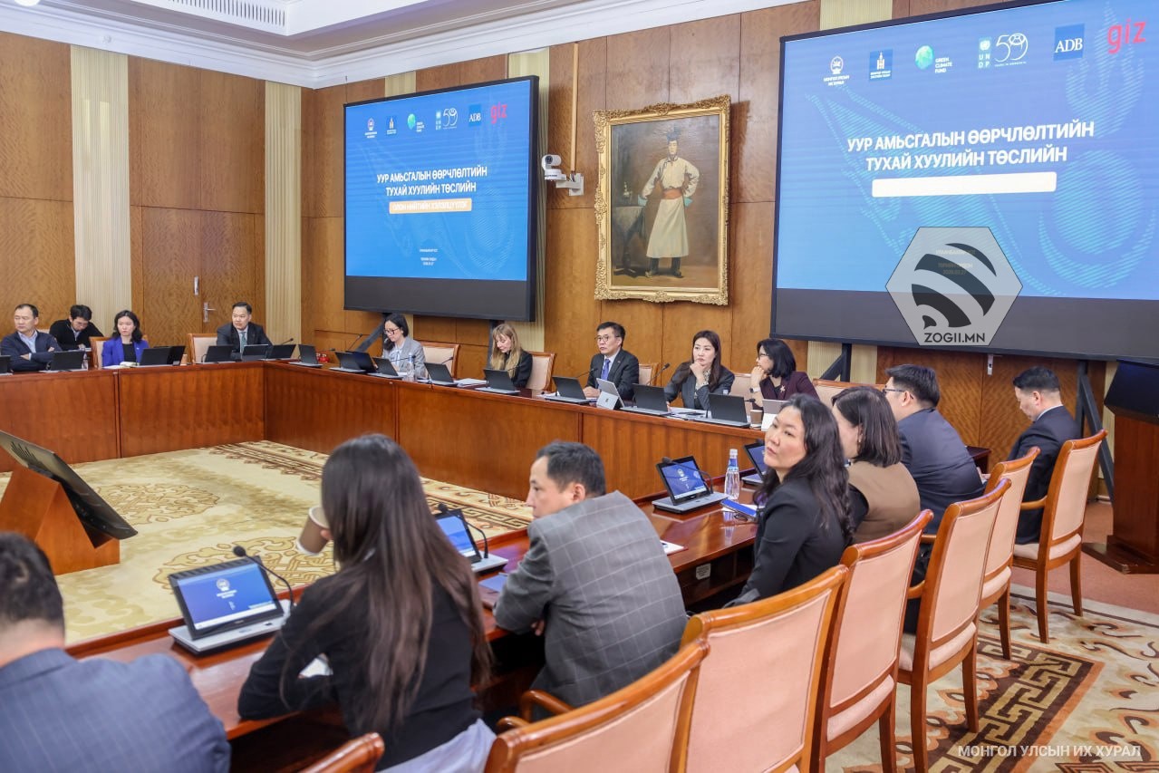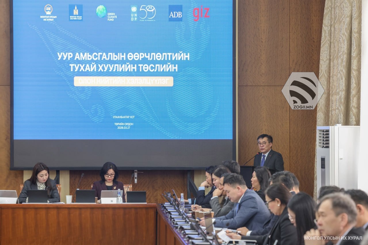 Монгол Улсын Их Хурлын дарга Н.Учрал гишүүнийхээ бүрэн эрхийн хүрээнд өргөн мэдүүлэхээр боловсруулж буй Уур амьсгалын өөрчлөлтийн тухай хуулийн төслийн талаарх олон нийтийн хэлэлцүүлэг өнөөдөр /2026.03.27/ Төрийн ордны “Жанжин Д.Сүхбаатар” танхимд боллоо.