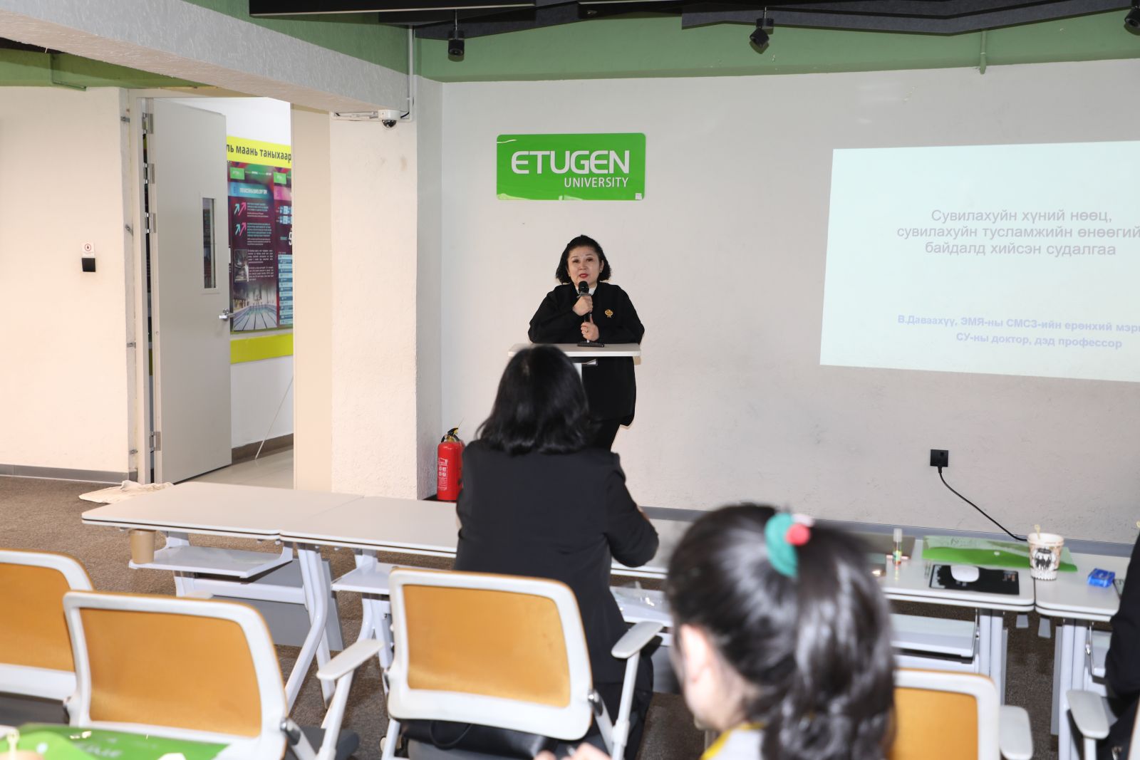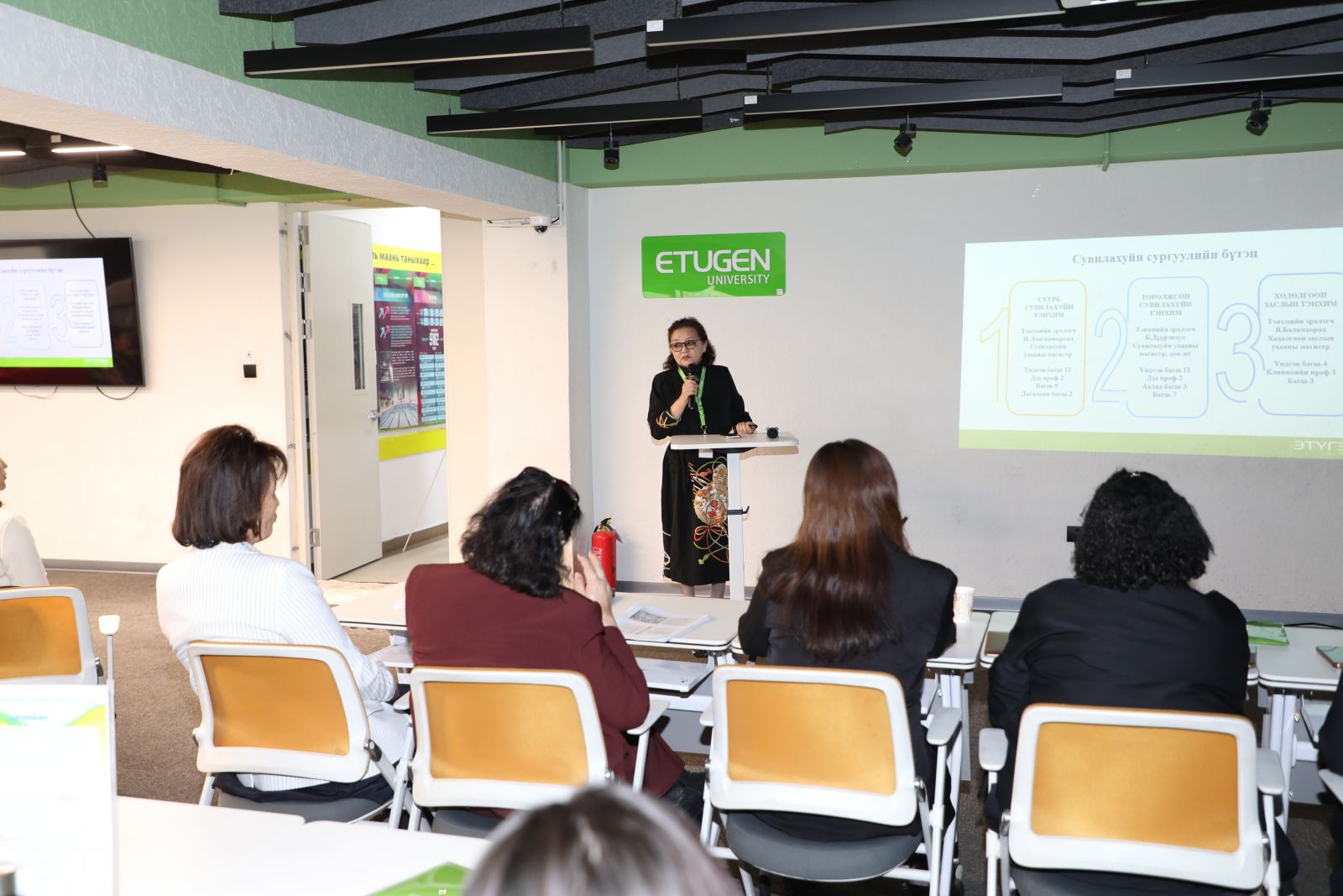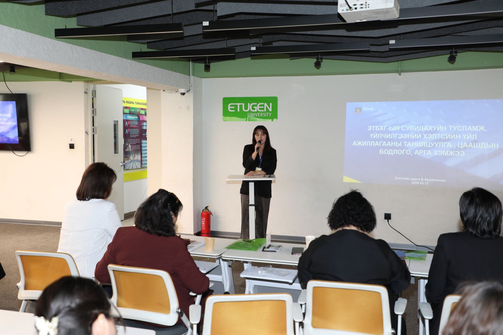 Мөн онол болон технологийн дэвшлийг сургалтад нэвтрүүлэх асуудлаар БНСУ-ын Кён-Ин сургуулийн багш, доктор, профессор Kang Na Gyeong (цахимаар), Этүгэн их сургуулийн Төрөлжсөн сувилахуйн тэнхимийн эрхлэгч, ахлах багш СУ-ны докторант Б.Дүүрэнзул нар "The Nursing Metaparadigm"-ийн үзэл баримтлал, Монголын сувилагчдийн нийгэмлэгийн дэд тэргүүн, Интермед эмнэлэгийн сувилахуй эрхэлсэн захирал Б.Амармэнд “Сувилахуйн Метапарадигм” постер илтгэл, Этүгэн их сургуулийн Инженерчлэл, технологийн сургуулийн захирал, дэд профессор Л.Нямхүү, Хүмүүнлэгийн сургуулийн захирал Б.Оргилмаа нар “Хиймэл оюун ухааныг сувилахуйн сургалт, судалгаанд ашиглах нь” сэдэвт сургалтыг зохион байгуулав.