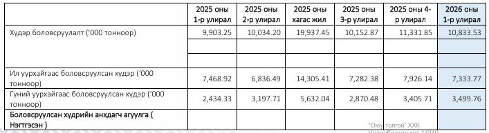 - 2026 оны эхний улиралд нийт 2.2 их наяд төгрөгийг татвар хураамж болон бусад төлбөрт төлжээ. Энэ дүн 2010 оноос хойш нийт 16.6 их наяд төгрөгт хүржээ.