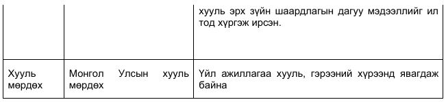 Хууль эрх зүй, холбогдох гэрээний хэрэгжилт