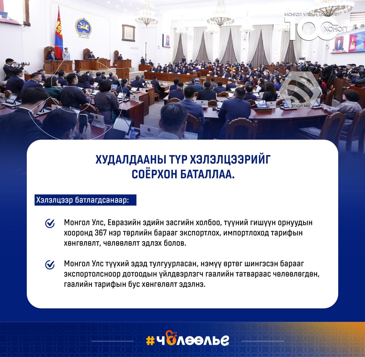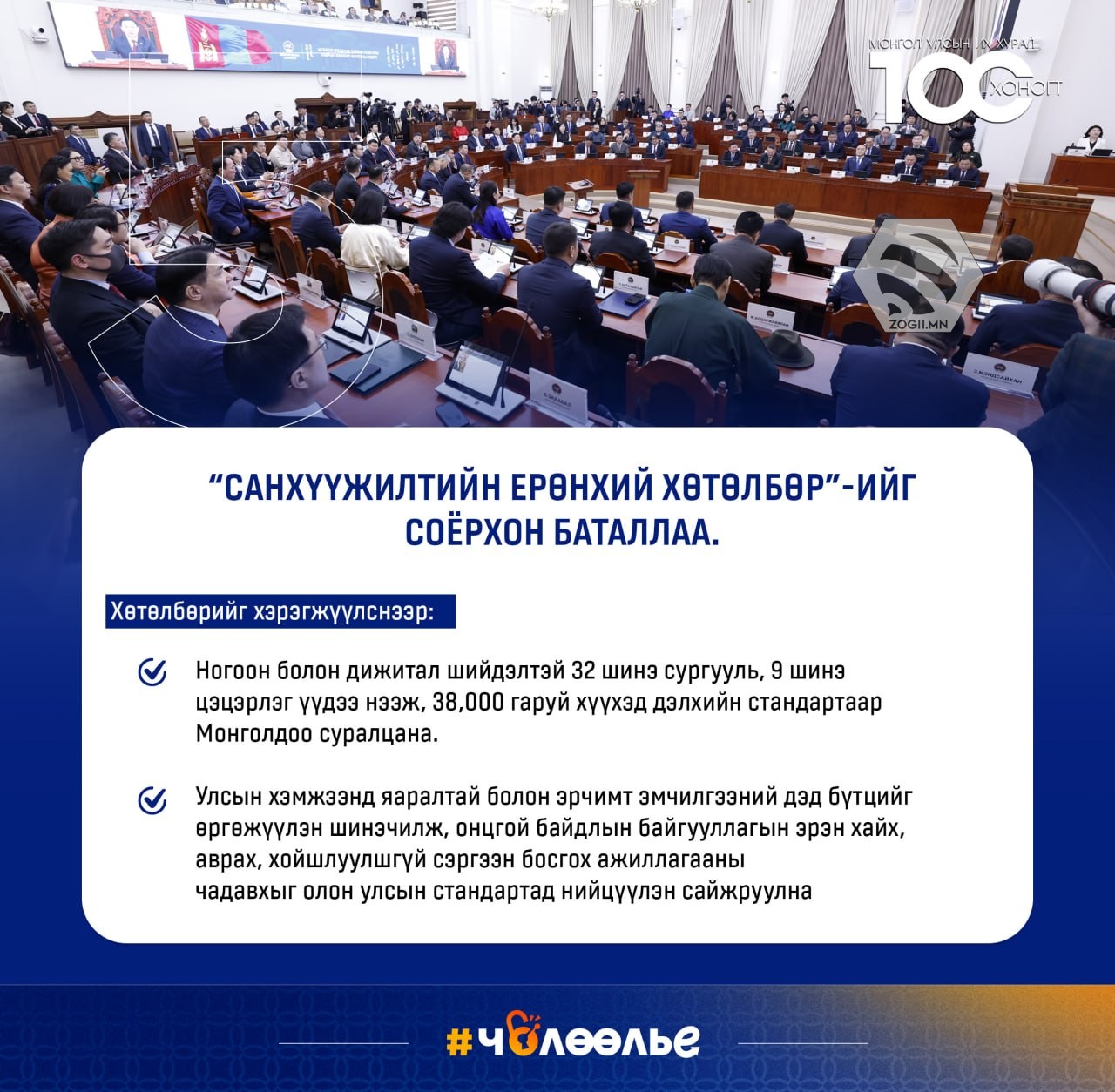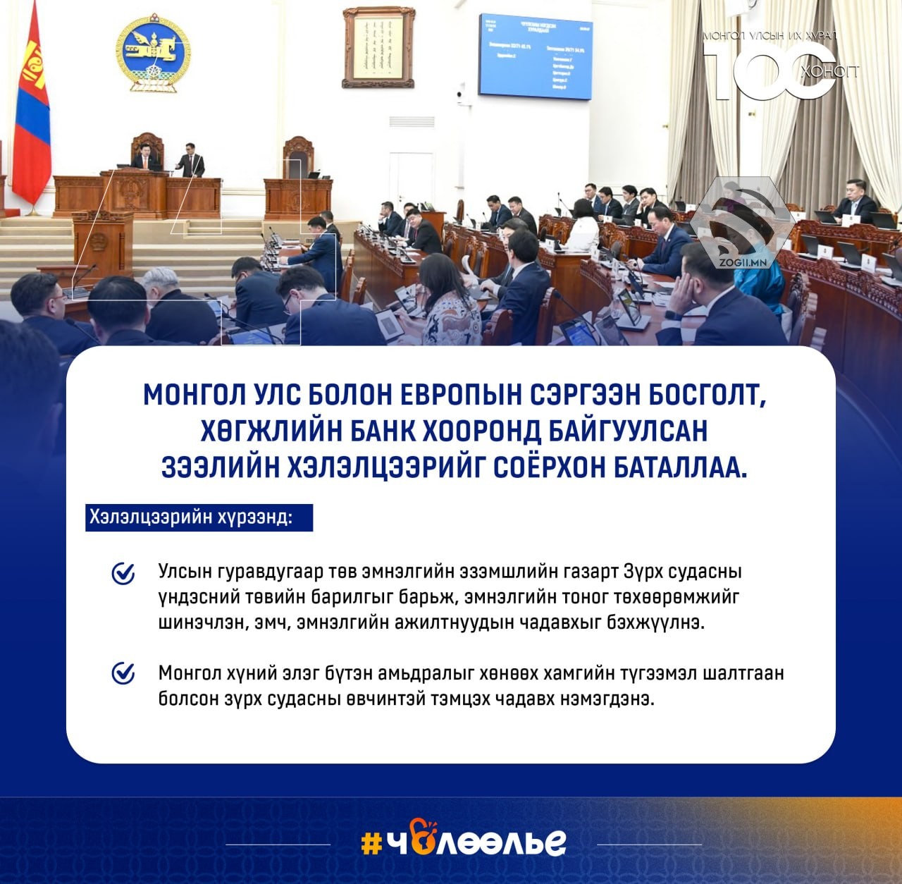 УЛСЫН ИХ ХУРАЛ 100 ХОНОГТ