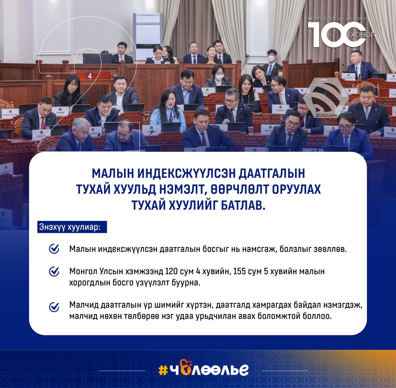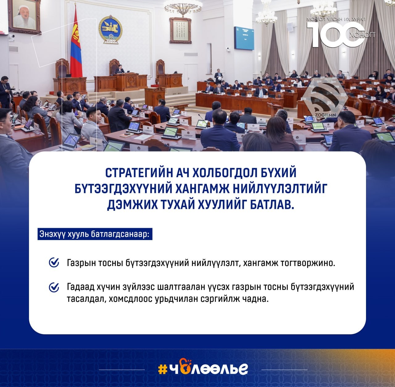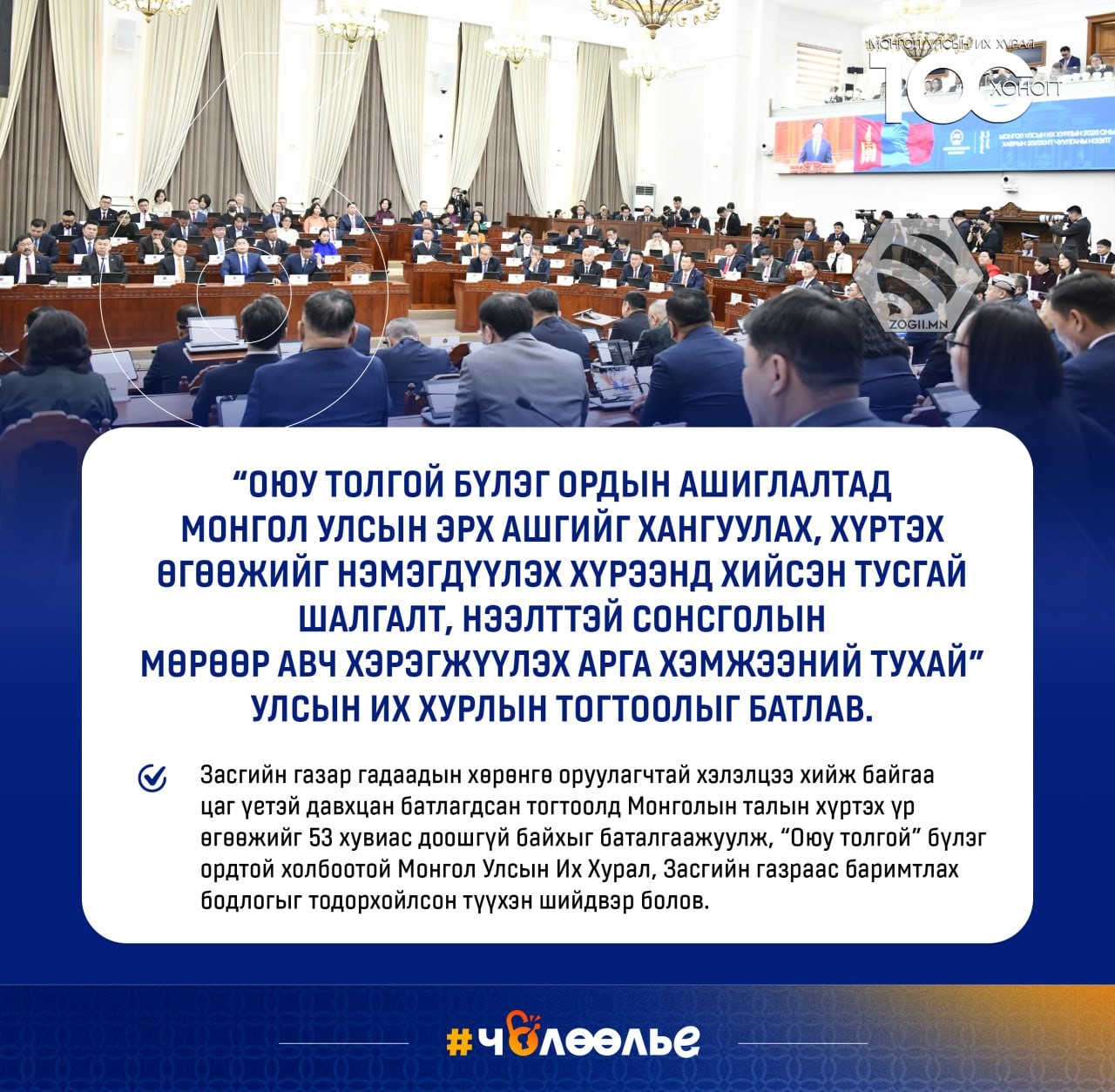 УЛСЫН ИХ ХУРАЛ 100 ХОНОГТ
